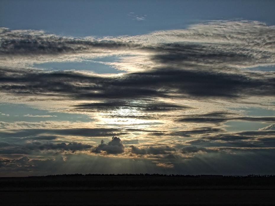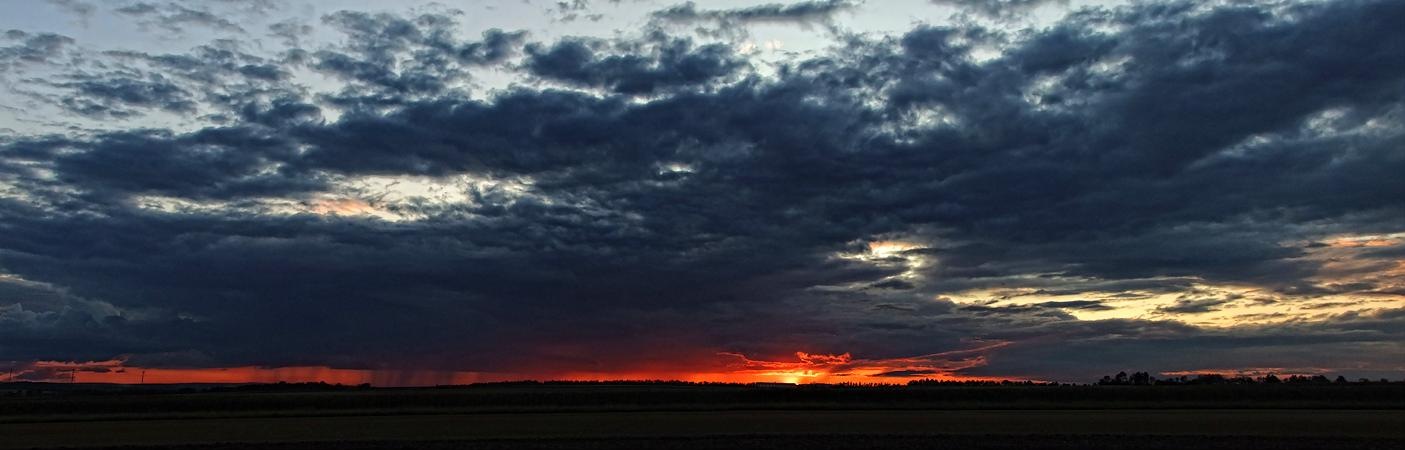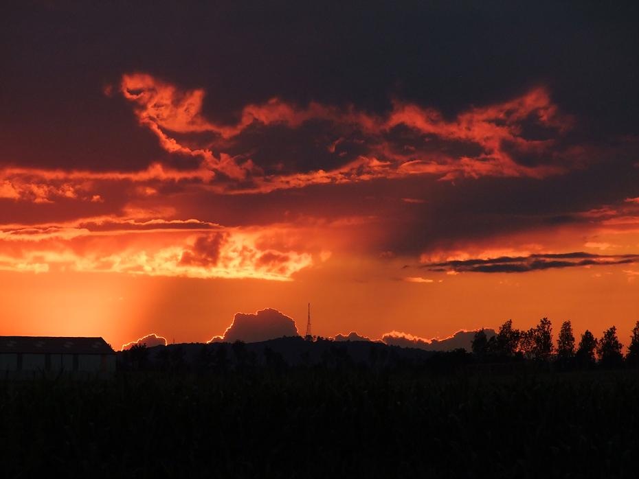 Schnell sieht man nur noch die orange angestrahlten Wolken: