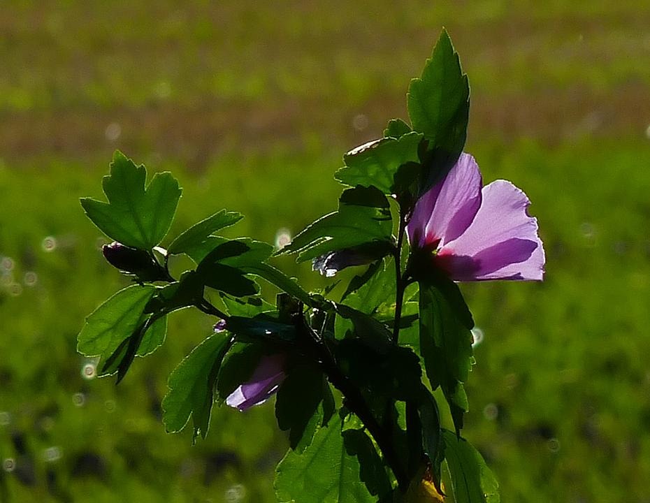 Zum furiosen Finale des umgesetzten Hibiskus in der Abendsonne (er hat also die Umsetzaktion recht gut überstanden):
