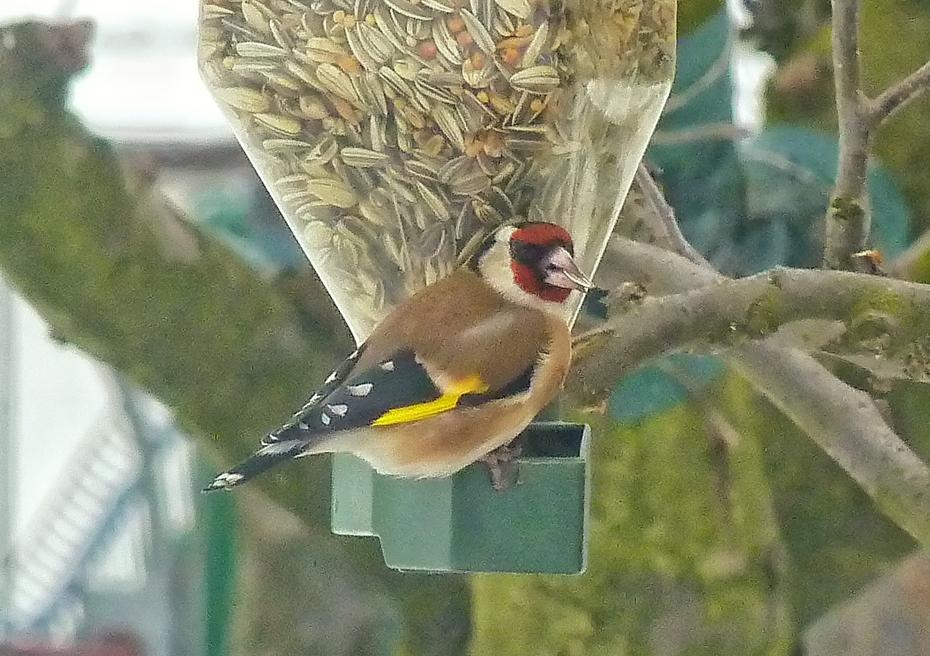 Laut meinem Vogelbuch sollte ein Stieglitz den Winter im Mittelmeerraum verbringen. Laut Wikipedia gehört der Stieglitz zu den Teilziehern, die je nach Wetterlage und auch nach Geschlecht nur teilweise in den Süden ziehen. Jedenfalls ist das Foto von meiner Futterstelle ziemlich eindeutig ein Stieglitz, oder?