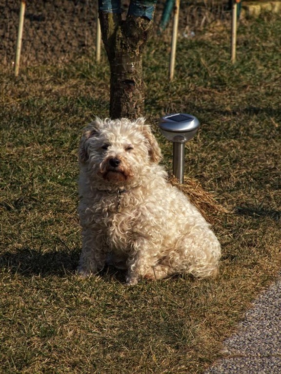 Auch unsere Hunde waren happy und saßen im Gras (oder besser gesagt in dem was nach der Kältewelle noch übrig ist):
