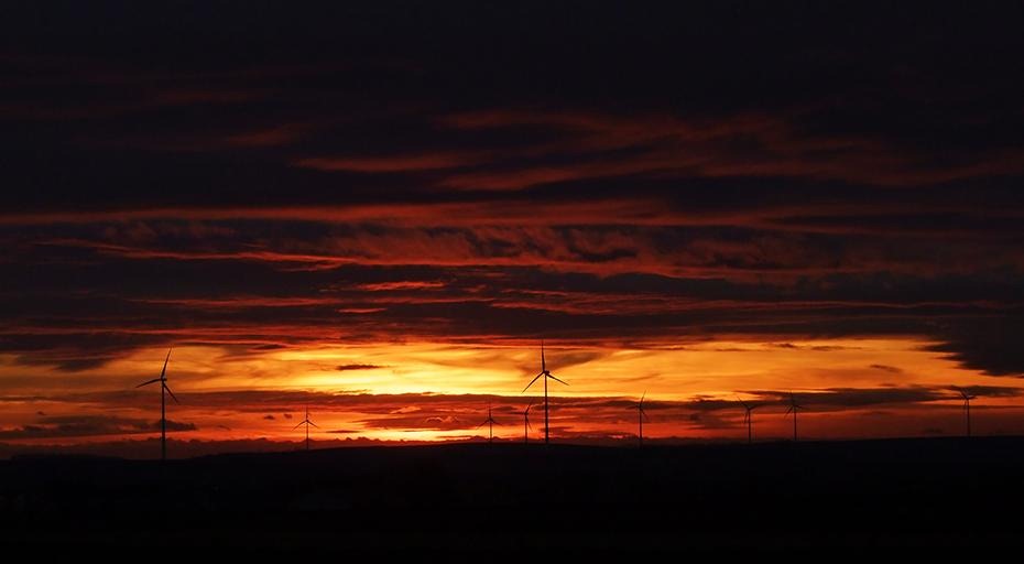 Da sieht selbst der Windpark hübsch aus. Das Böse folgt aber dem Sonnenuntergang: Es klart auf. Somit bleiben wir nicht bei den gemütlichen wiener 6°C sondern wir gehen deutlich in den Frostbereich. In der Früh ist es dann entweder nur ganz kurz sonnig oder gleich wolkig, sodaß es sich auch nicht mehr so richtig erwärmen kann. So haben wir eben um die 0°C, während Wien um die 7°C hat.