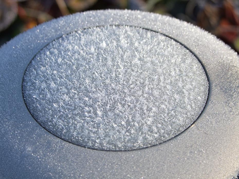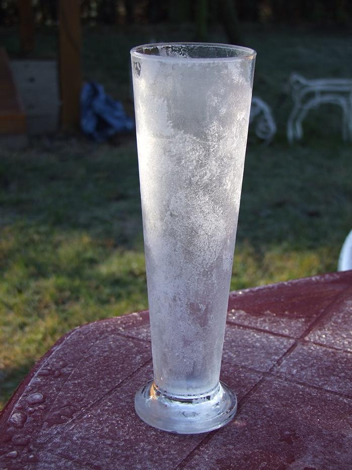Kaum hat man ein Glas über Nacht draußen stehen lassen, schon sieht es fast künstlerisch aus: