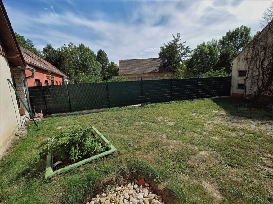 Der alte Zaun ist schon weggerostet, wenn er warm wurde mußte man die Türen im wahrsten Sinn des Wortes auftreten und zudem war er extrem unpraktisch, denn man mußte mitten auf der Hauptstraße stehenbleiben, wenn man rein wollte (um das Tor aufzumachen). Da der dahinterliegende Fahrweg ohnehin zu absolut nix sonst nutzbar ist, habe ich die Idee gehabt, einen öffentlichen Bereich abzuzäunen, damit man in Ruhe reinfahren kann und Platz für eine Paketbox und die Mistkübel entsteht. Und dann erst ein neues Tor setzen. Und wie so oft: Gute Idee, mach das. Da der Boden dort hart wie Beton ist,